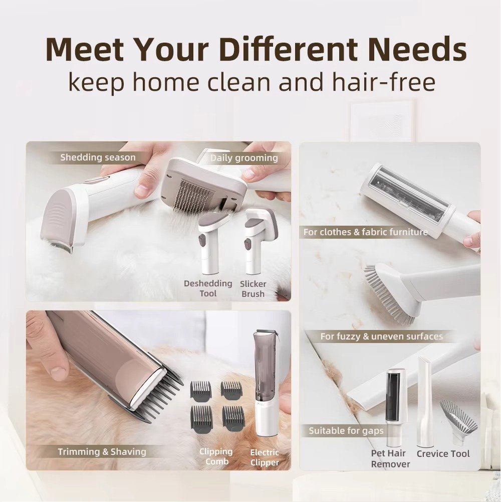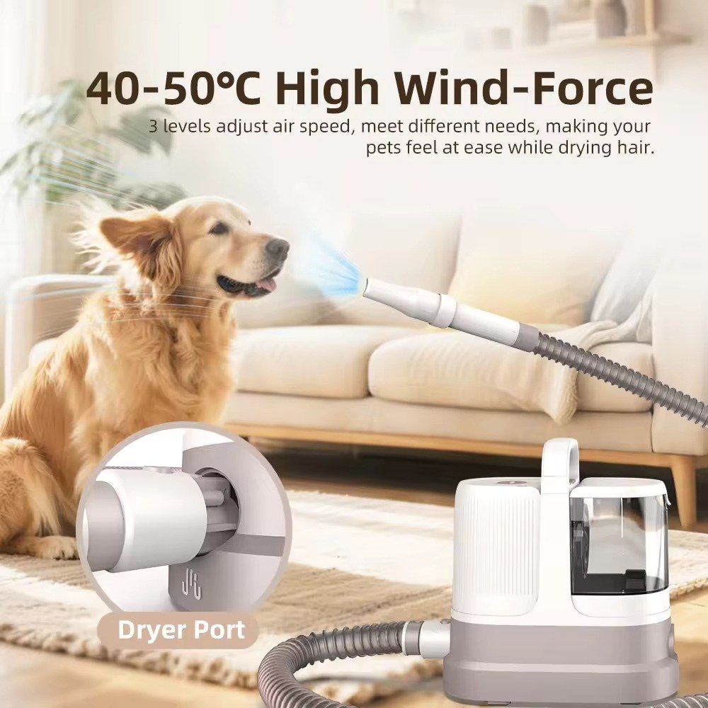The Pet Grooming Vacuum & Dryer is a 2-in-1 grooming system that makes pet care easier, cleaner, and more efficient. It combines a powerful vacuum to collect pet hair and dander with a gentle adjustable dryer to keep your furry friends clean, dry, and happy. Perfect for both professional groomers and home use.